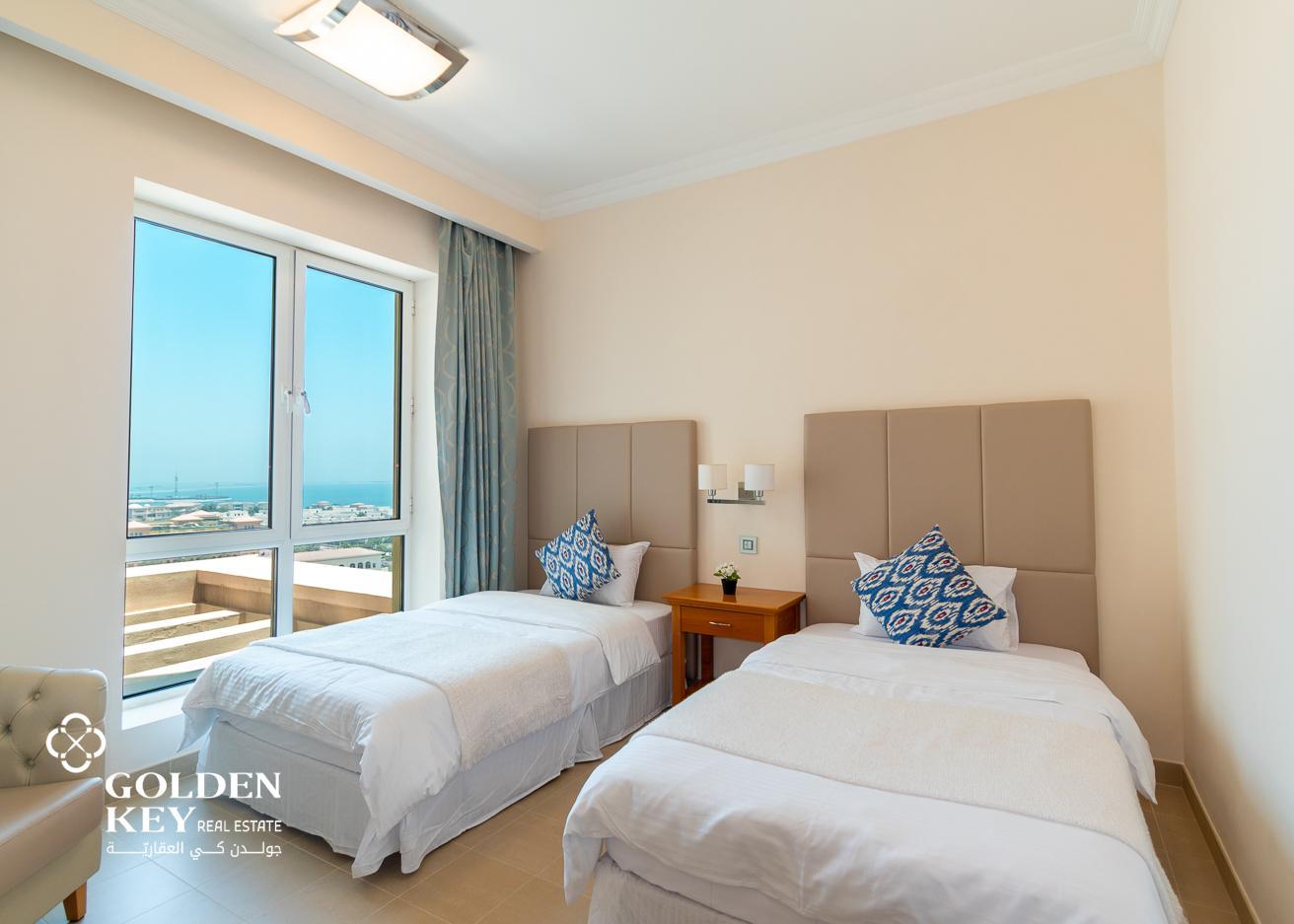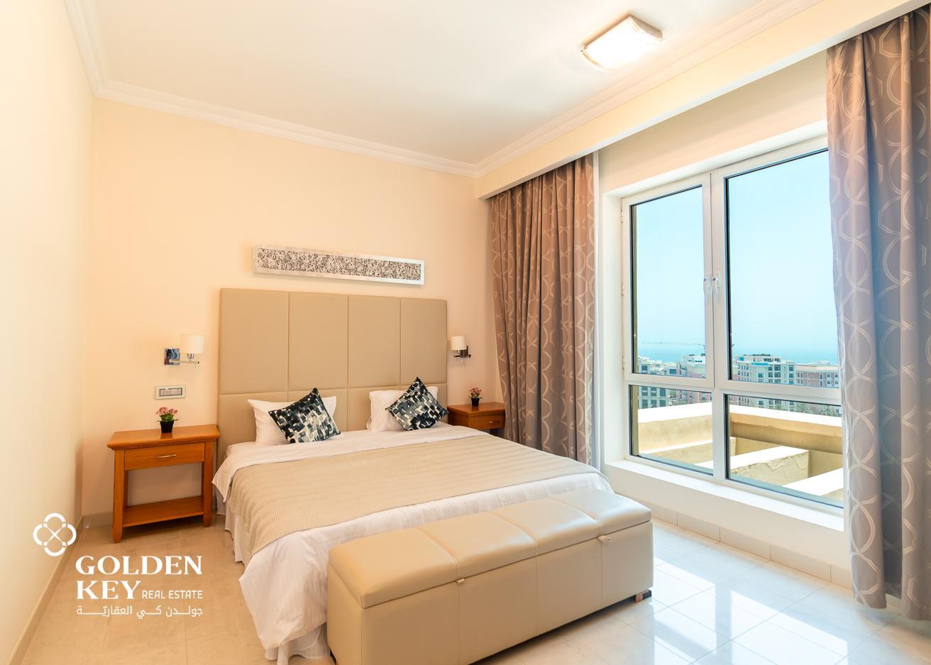 With a prime location in the beautiful Pearl area, this high-floor apartment is surrounded by luxury. Offering a spacious living area with a balcony and amazing views, a fully equipped kitchen, 2 bedrooms, a swimming pool, and exciting amenities are included in the price.