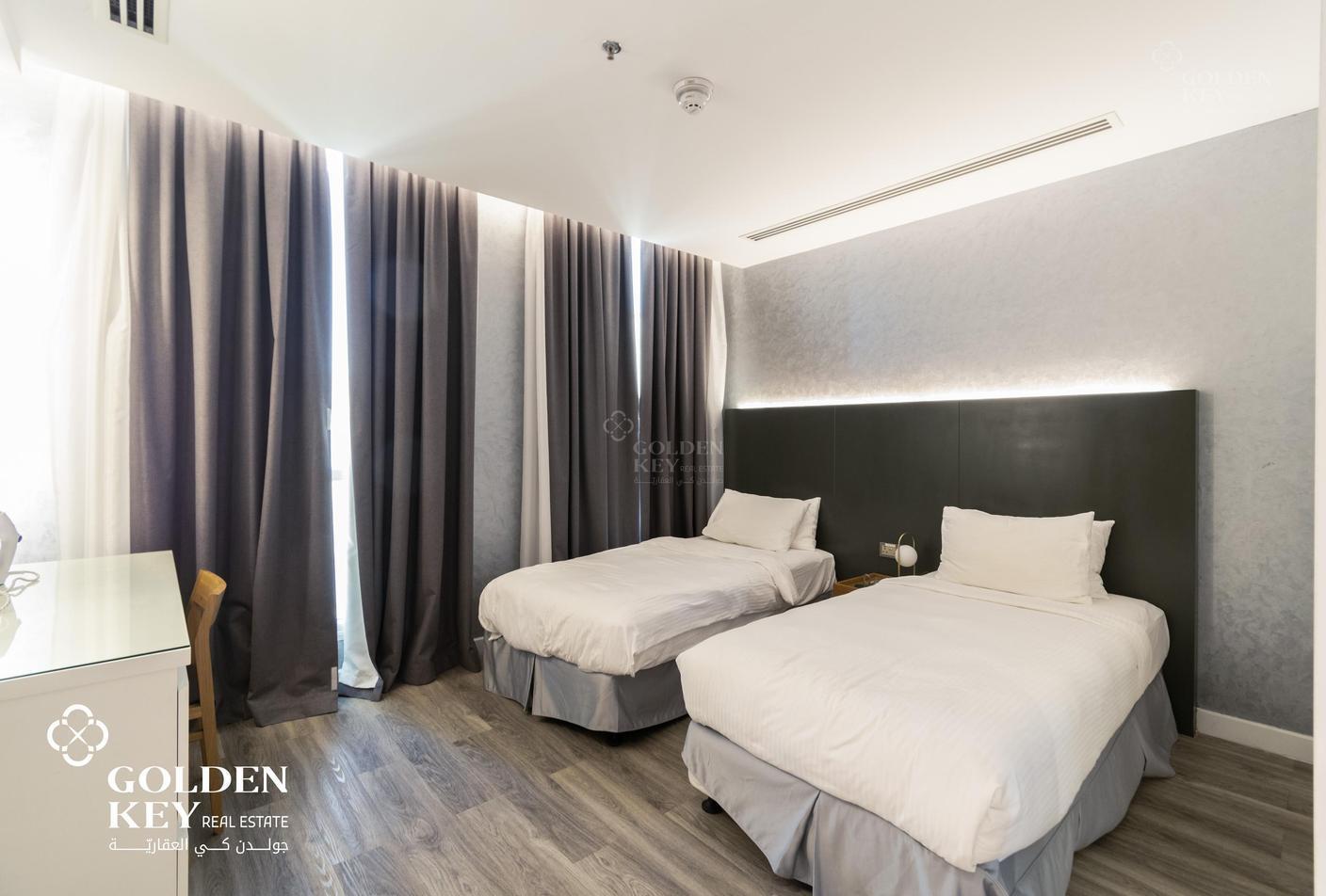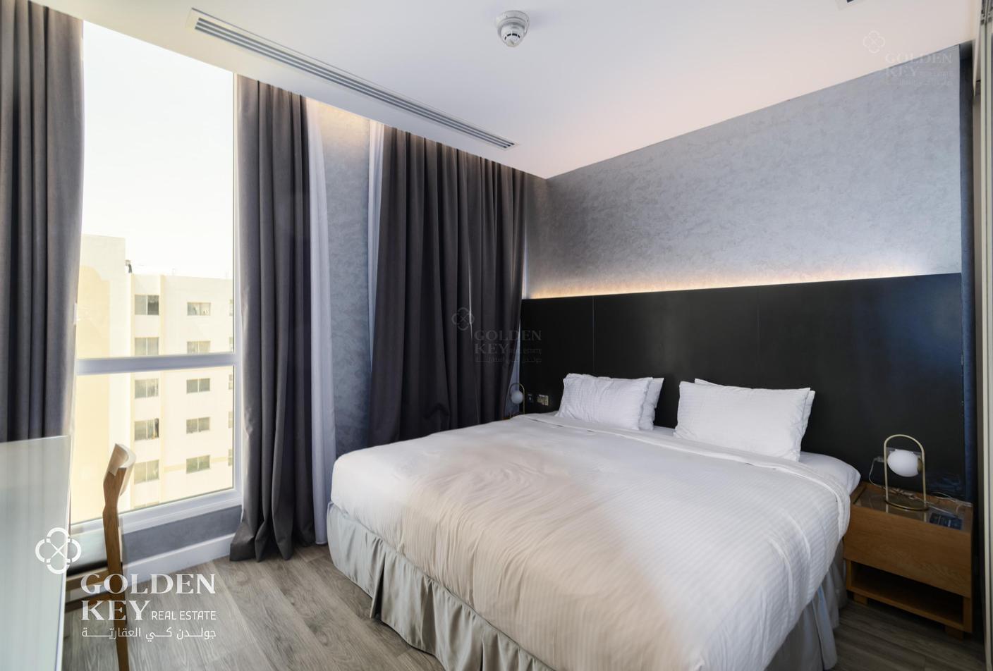 Discover the perfect blend of comfort and convenience with this elegant 2-bedroom fully furnished apartment in the heart of Rawdat AL Khalil in Muntzah. Designed to meet the highest standards of modern living, this apartment offers a spacious layout with stylish interiors, providing an inviting atmosphere that feels like home from the moment you step inside. Each room is meticulously furnished with high-quality pieces, ensuring a harmonious blend of aesthetics and functionality. The living area is equipped with plush seating and a flat-screen TV, ideal for relaxation and entertainment. The kitchen comes fully stocked with modern appliances and sleek cabinetry, making meal preparation a breeze. Both bedrooms are fitted with cozy beds and ample storage space, promising restful nights and clutter-free living.