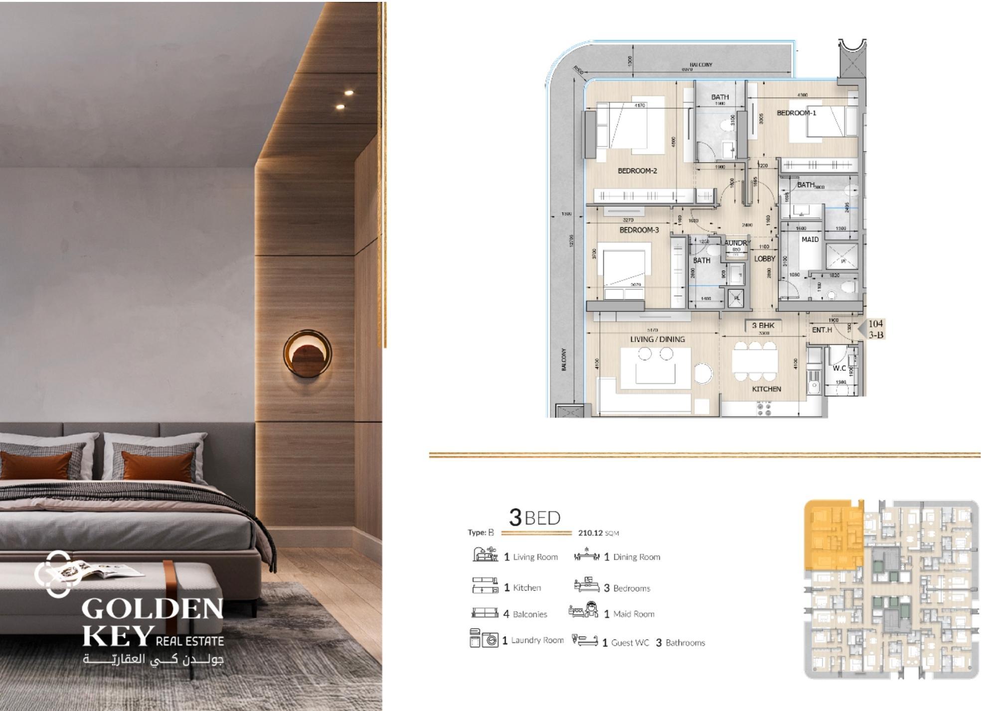 Golden Key Real Estate is pleased to offer this fully furnished 3-bedroom apartment for sale near Lusail. Designed with modern comfort and elegance in mind, this bright and inviting space is ideal for both living and investment. With dining, shopping, and entertainment just steps away, you’ll enjoy the convenience of a prime location. Property Highlights: - Bedroom: 3 spacious, sunlit bedroom with premium finishes - Bathroom: 4 modern bathroom with sleek fixtures, Including guest toilet - Kitchen: Open-concept layout with high-end appliances and contemporary cabinetry - Furnishings: Fully furnished with tasteful, high-quality furniture - Finishing: Stylish interiors designed for modern urban living - View : Sea View/City View World-Class Amenities Include: • Main Reception • Grocery store • Restaurant / Café • Basement and Ground Floor Parking • Gym & Health Club • Jacuzzi • Pool and Kids Pool • BBQ Area • Kids Zone (Indoor/Outdoor) • Entertainment Room • Lounge and Rooftop Area • Salon / Barber Shop (Male & Female) • Infinity Pool • Maintenance and Technical Services