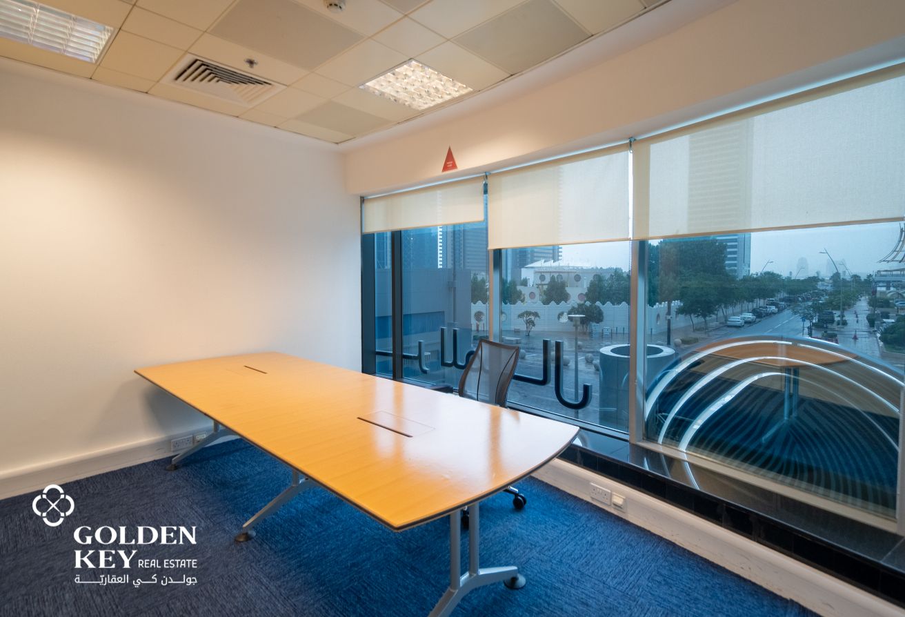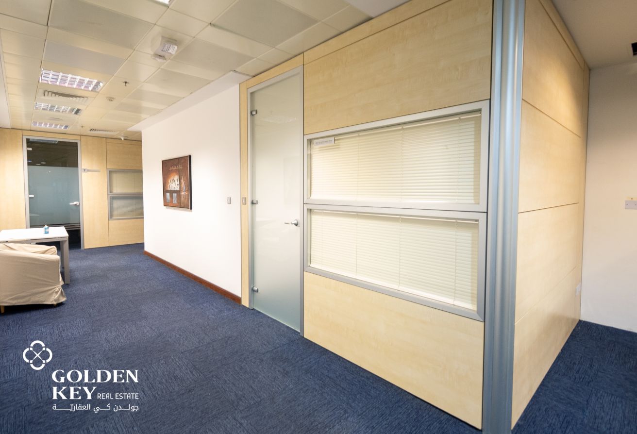Fully Fitted Office Space in West Bay Business District Located in the heart of Doha’s premier business district, this office space in West Bay offers a strategic address for businesses seeking visibility, convenience, and a professional environment. The property boasts a modern layout with functional spaces ideal for corporate offices, professional services, start-ups, or regional headquarters. Total Area Size: 157 sqm • Fully fitted interior: Includes internal partitions, built-in cabinets, and workspace layout ready for operations • Equipped with a pantry or kitchenette area • Modern commercial tower • Prime Location - Easy access to major roads • Ideal for corporate offices & growing businesses