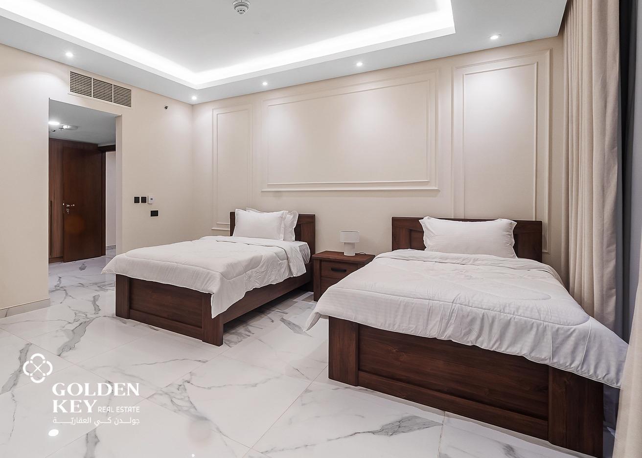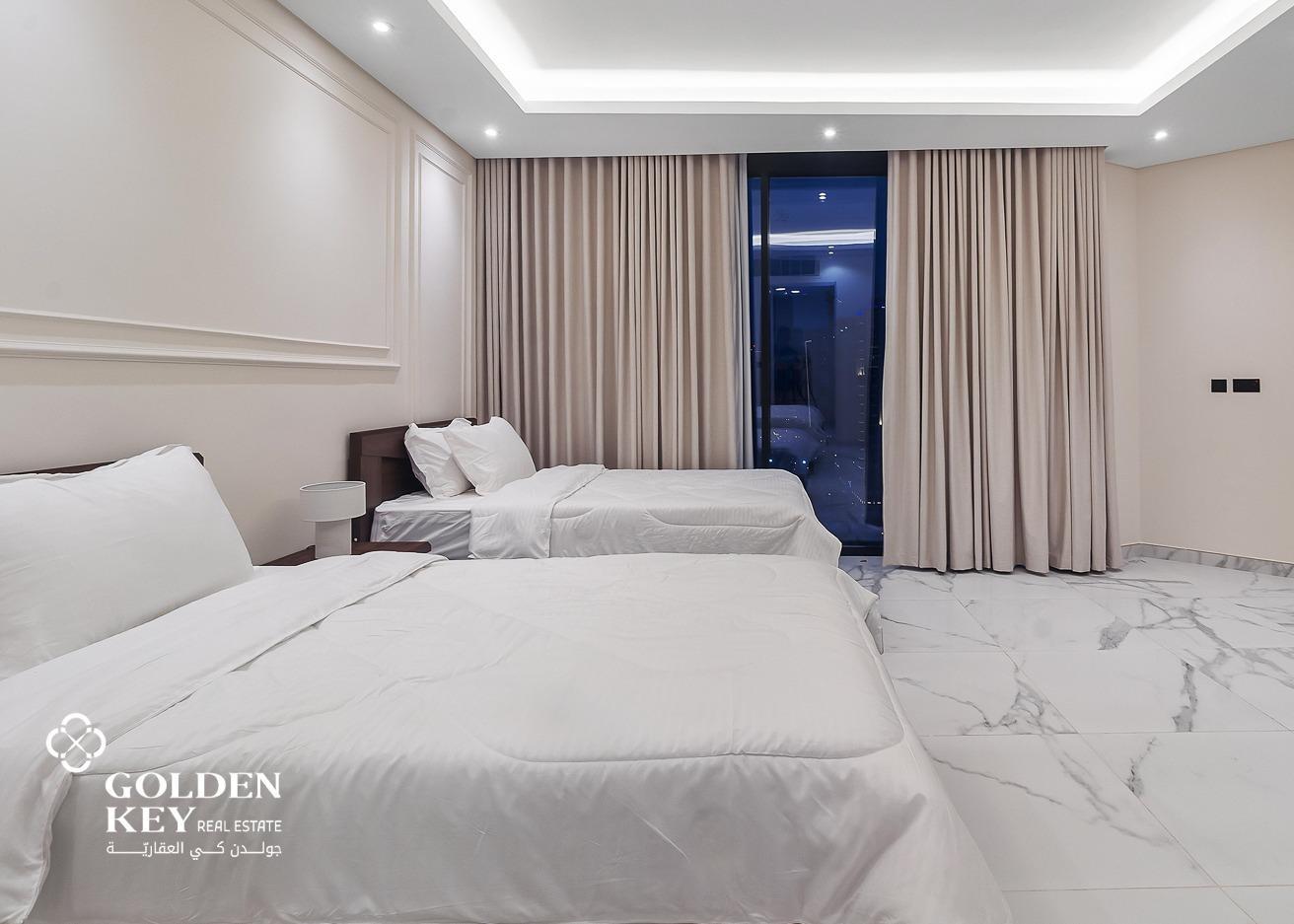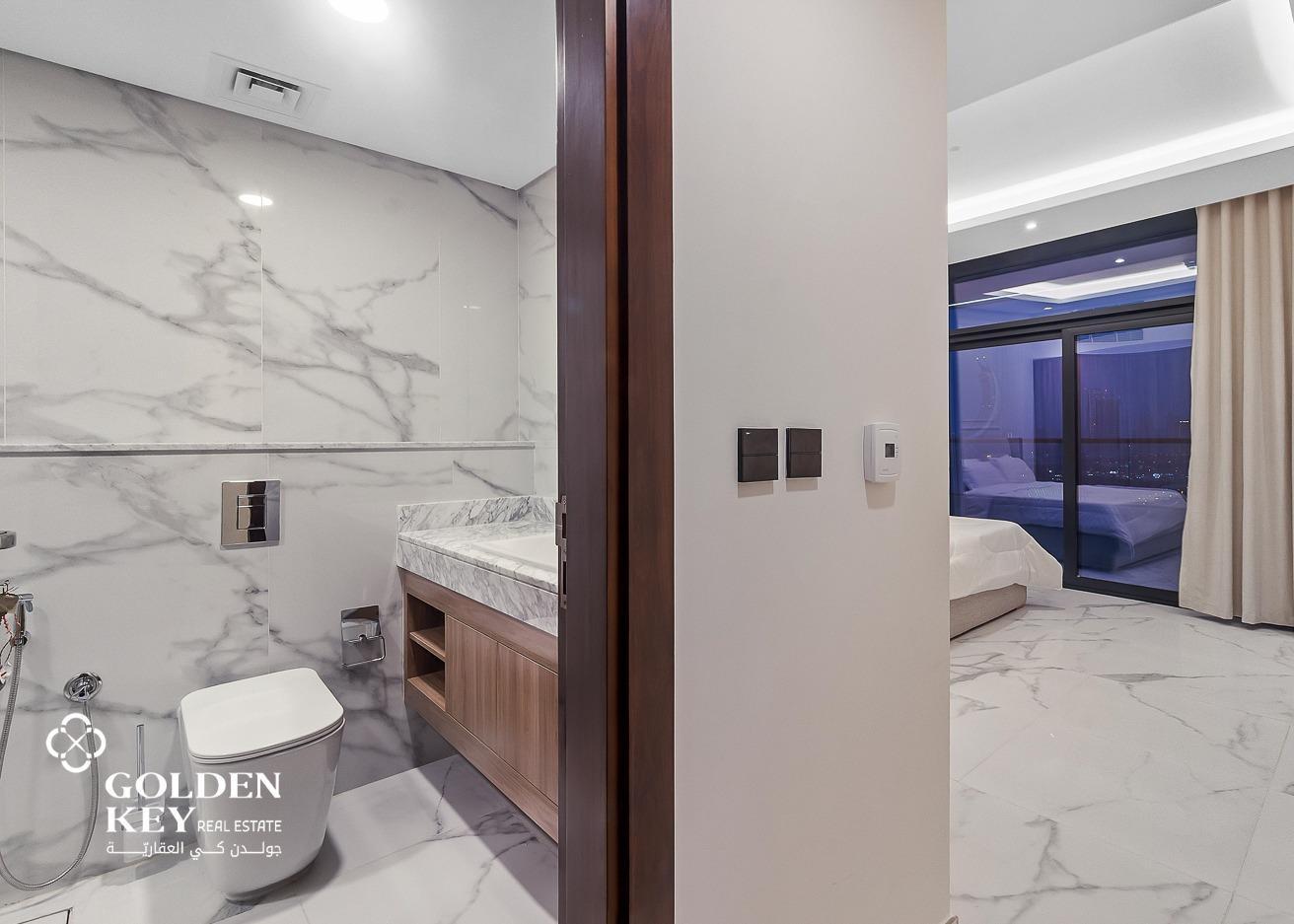 2 Bedroom: Spacious and elegantly designed with a comfortable king-sized bed, built-in wardrobes, and large windows offering stunning views of the marina.